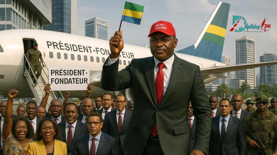 Libreville, le 12 Juillet 2025 – (Dépêches 241). Le 10 juillet, Brice Clotaire Oligui Nguema a regagné Libreville après un séjour au pays de l’Oncle Sam où il avait été convié par le Président Trump pour un sommet des dirigeants africains. À sa descente de l’avion, le Chef d’Etat a été accueilli triomphalement par la population. La veille, Mays Mouissi, ministre et secrétaire général de l’Union Démocratique des Bâtisseurs (UDB), le parti politique du Président, dans un élan de « Kounabélisme » dégoulinant, a exhorté les partisans du parti à réserver un accueil populaire au « Président Fondateur ».