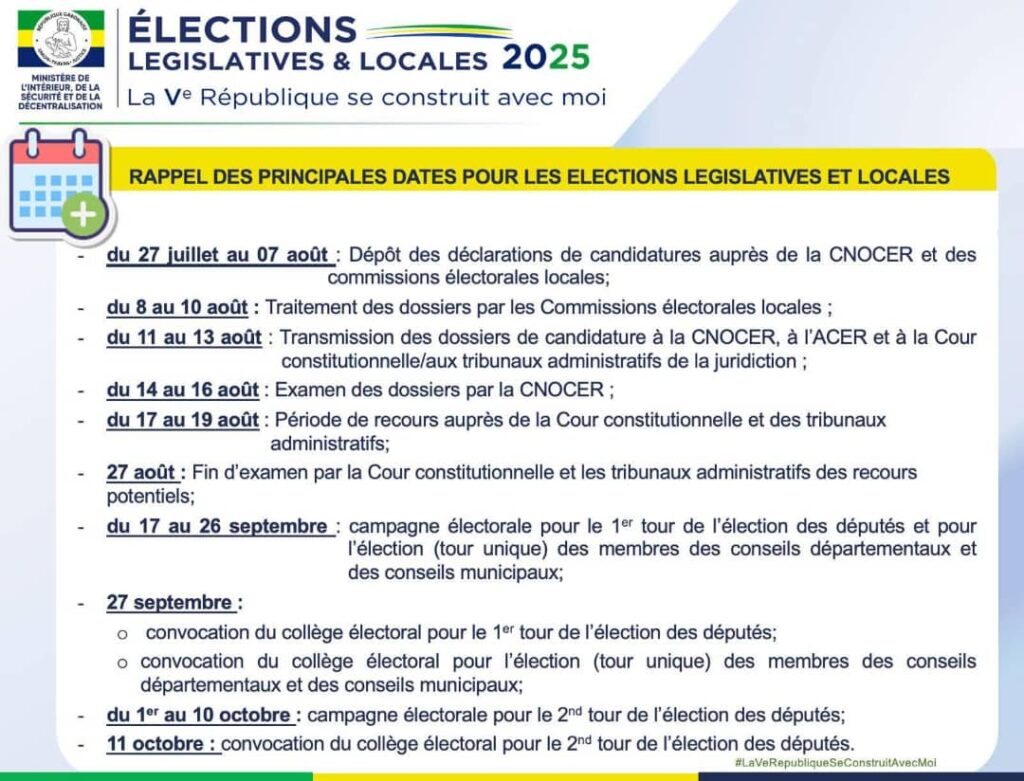 Libreville, le 20 août 2025 – (Dépêches 241). On aurait cru les pratiques du régime avilissant Bongo-PDG révolues en cette Ve République Gabonaise. Il n’en est malheureusement rien. Modifications insidieuses de texte de loi, triturations et violations des procédures électorales sont toujours autant présentes. La dernière en date: la publication par le Ministère de l’Intérieur de la liste officielle des candidatures retenues pour les élections législatives du 27 septembre prochain, un jour après la date butoir prévue pour les recours. Des méthodes qui rappellent tristement les heures sombres du système Bongo-PDG, supposément tombé le 30 août 2023.