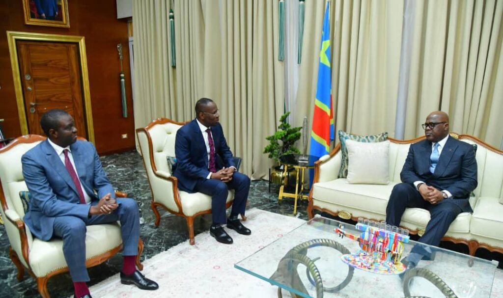 Le Président de la RDC, Félix-Antoine Tshisekedi , pendant son audience avec Yvon Sana Bangui, Gouverneur de la Banque des États de l’Afrique centrale (BEAC)