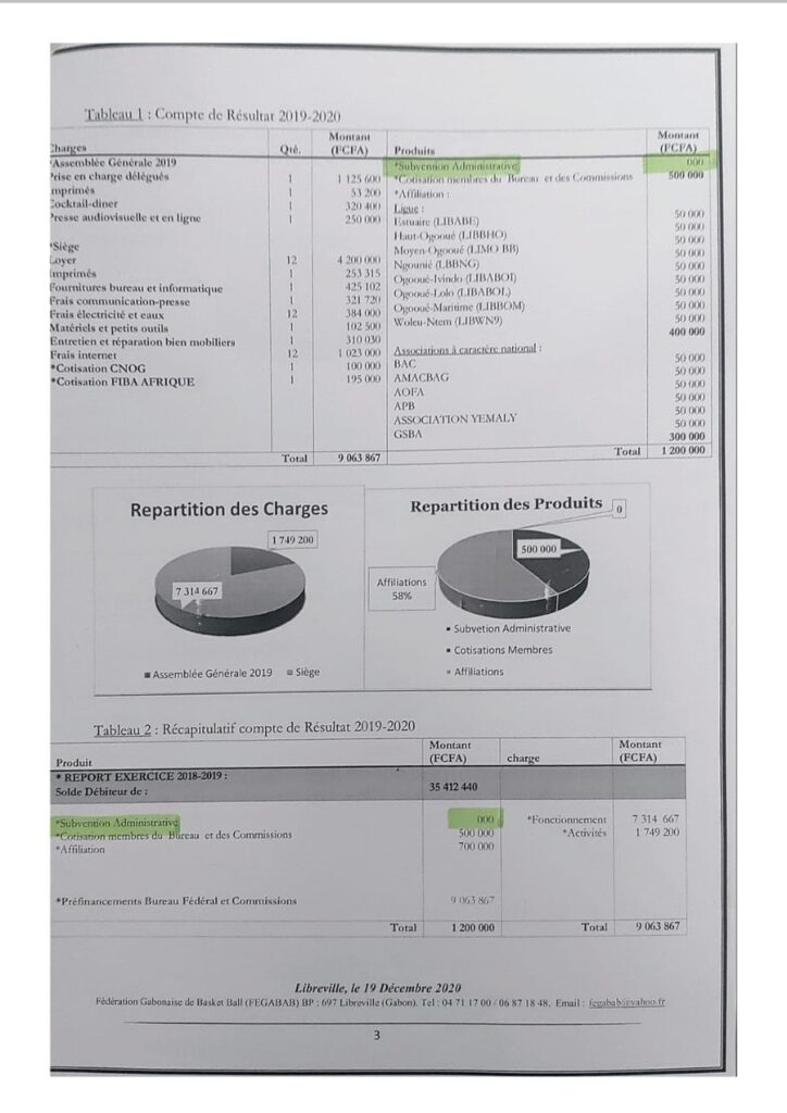 Pour preuve, Léopold Aimé Evah présente des rapports financiers de la Fegabab, lesquels rapports révèlent que l’Etat n’a attribué aucune subvention à la Fédération entre 2019 et 2020. « Les rapports financiers sont transmis au Directeur général des Sports. Et dans ces rapports, il est écrit noir sur blanc, que la Fédération Gabonaise de Basketball n’a reçu aucune subvention en 2019 et en 2020 » poursuit l’ancien président fédéral.