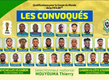 Libreville, le 29 août 2025-(Dépêches 241). Ce 29 août 2025, à l’hôtel Nomad d’Akanda, le sélectionneur national Thierry Mouyouma a rendu publique la liste des 25 joueurs retenus pour les deux prochaines rencontres des Panthères du Gabon, comptant pour les éliminatoires de la Coupe du monde 2026. Le Gabon affrontera […]